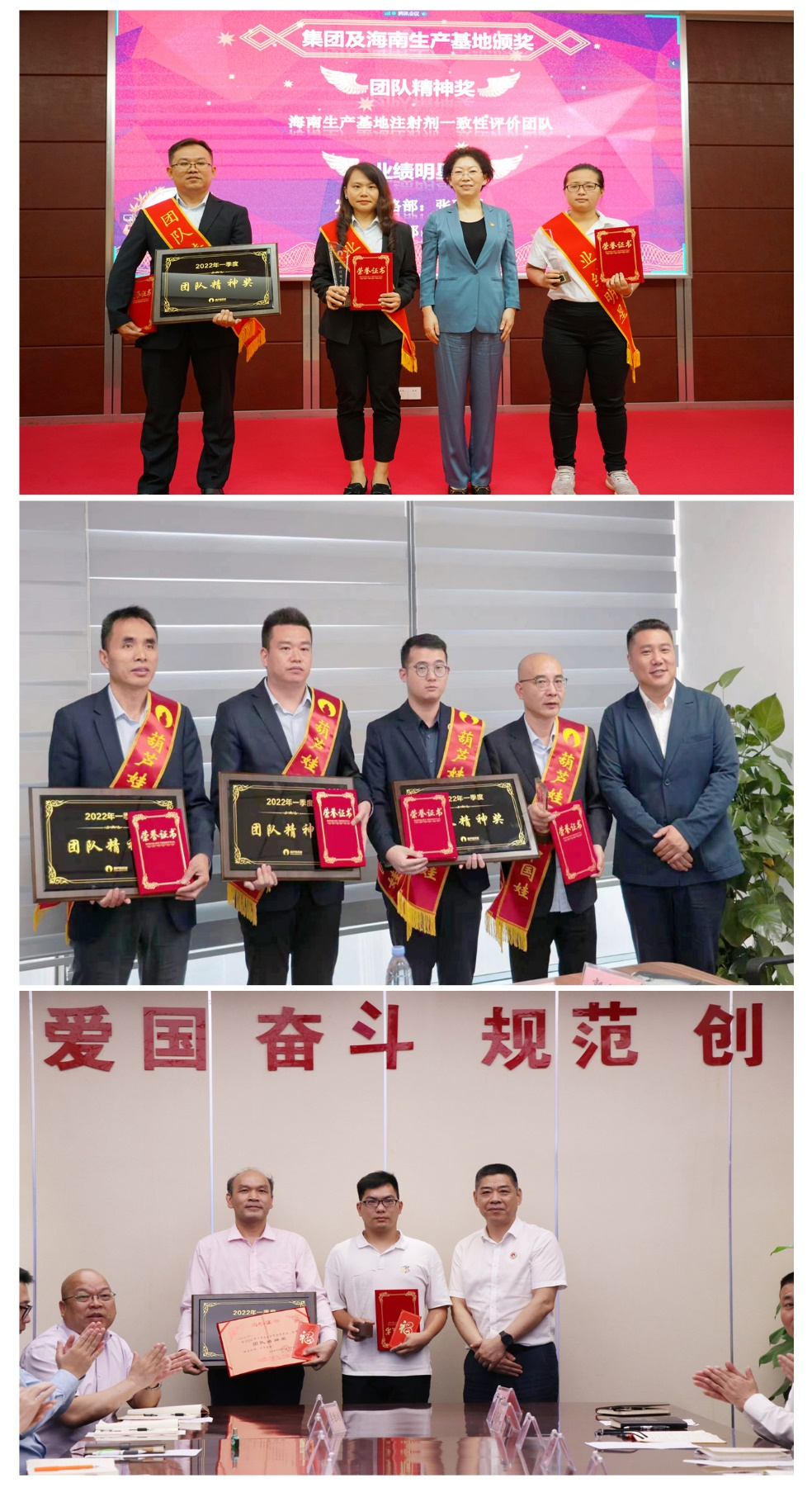 为了表彰在2022年一季度“深化变革,赢得开门红”工作中“超额完成计划、超出本职工作或超越组织预期”的先进集体和优秀个人,会议期间还举行了6008集团药业集团2022年一季度“开门红”表彰颁奖仪式。营销中心葫芦世家事业部湖南区域主管黄子杰等12人荣获业绩明星奖,葫芦世家事业部等5个集体荣获团队精神奖。